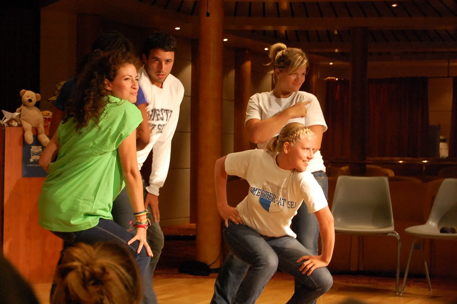 While at sea classes are held daily, when in port students participate in field excursion designed to experientially extend the classroom experience. Field excursions vary from port to port and include everything from volunteering at orphanages, home stays with local families, and hiking the Turkish mountains to camel trekking in the Sahara, and visits to the pyramids, the Acropolis, and the museums of Rome and Florence. To augment these field excursions Sybil has created trips to the State Puppet Theatre of Varna in Bulgaria, where students and faculty will attend a performance of the "Cave and the Shadows," an award-winning vanguard production for adults, and a Theatre of the Oppressed workshop led by the Artistic Director of Painted Bird Theatre in Istanbul.
